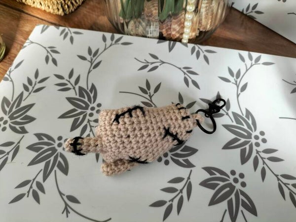 Porte clés représentant une main vivante de zombie, aux belles cicatrices.
