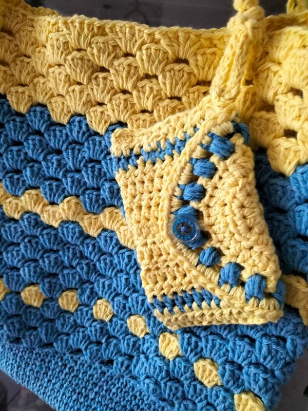 Ce sac est accompagné d'une petite pochette crocheté avec les même fils de coton recyclé, vous pourrez y glisser carte, monnaie,vos bijoux, ou autres...laissez le prendre a l'extérieur du sac ou tournez l'envers l'intérieur, suivant ce que vous y glissez dedans 😉.