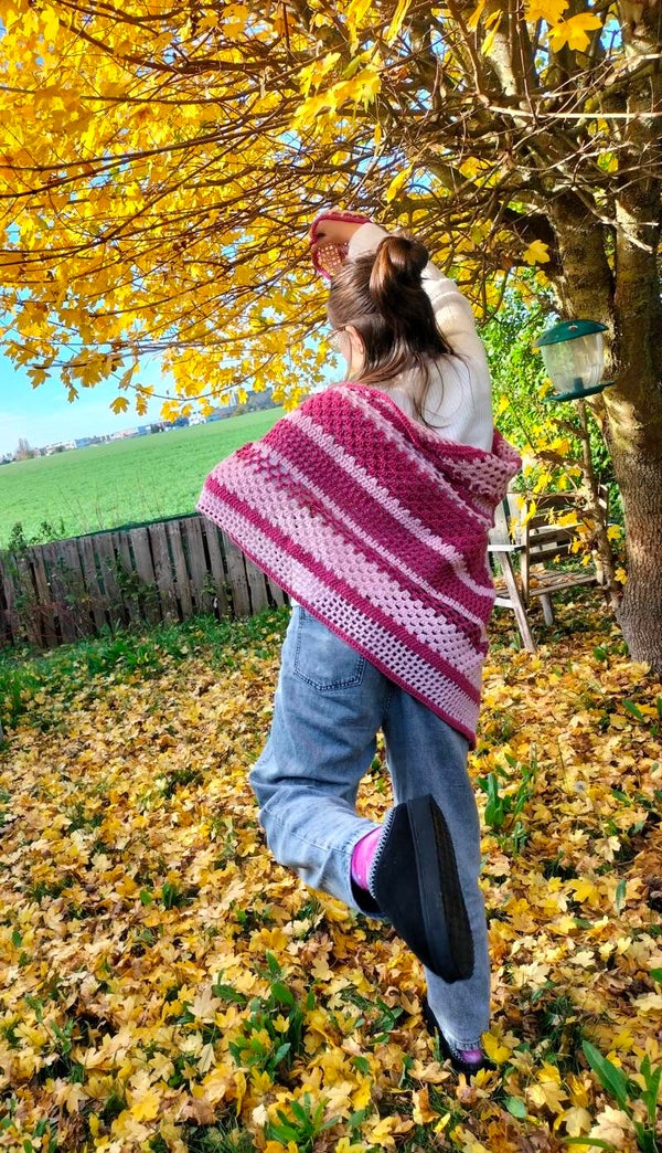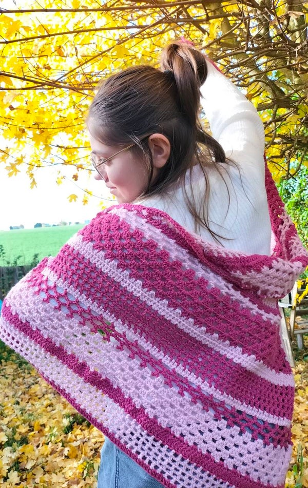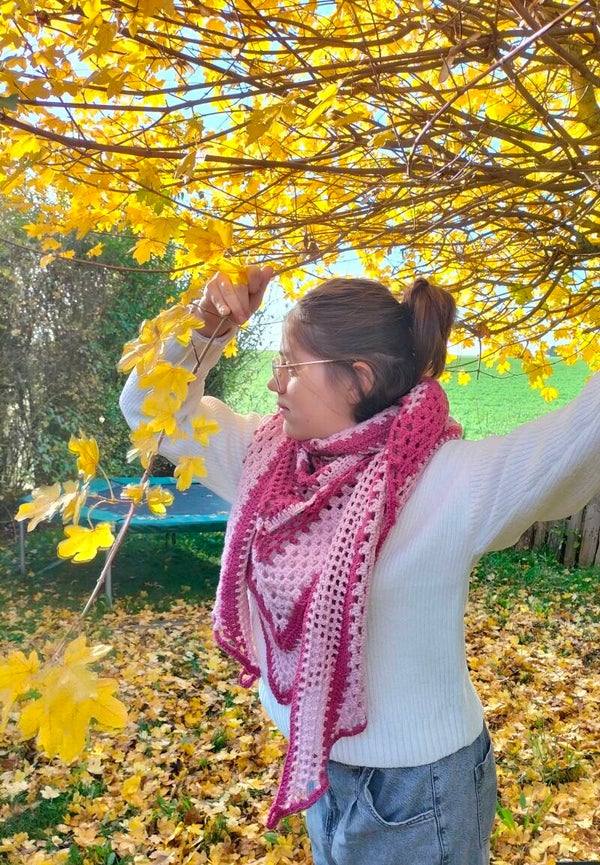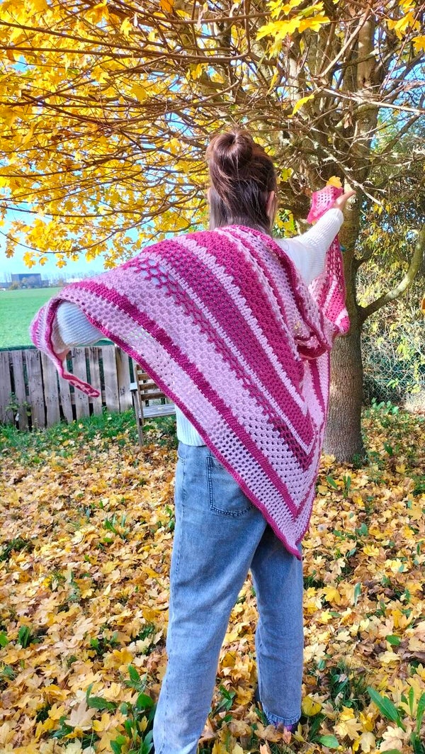 Ce superbe grand châle vous enveloppera pour vous tenir chaud lors des journées et soirées fraîche, en châle ou en écharpe il sera du plus bel effet.