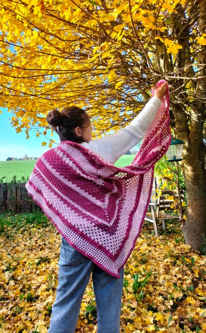 Ce superbe grand châle vous enveloppera pour vous tenir chaud lors des journées et soirées fraîche, en châle ou en écharpe il sera du plus bel effet.